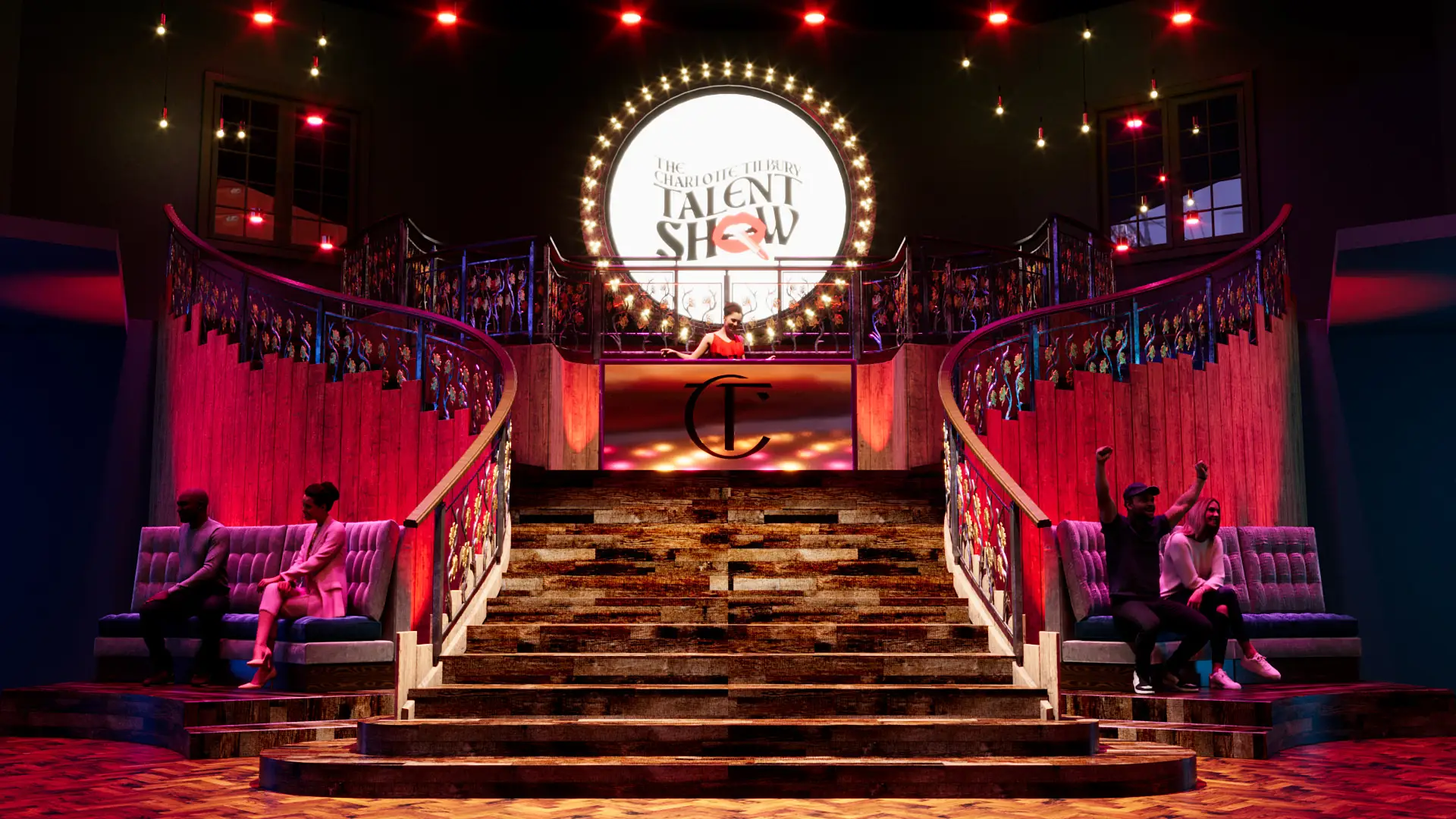 I had to model up the front of the building, entrance staircase, bar area and main event hall from photo references and simple floor plans supplied. I had a couple of the displays supplied as Sketch-Up models which I had to clean up and texture. It was a challenge to get everything built in such short time. Making sure only visible bits were done, especially the main hall. This would have taken weeks to model up if you see the actual venue.