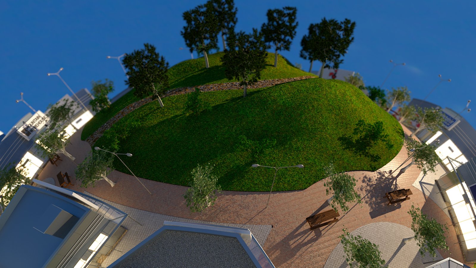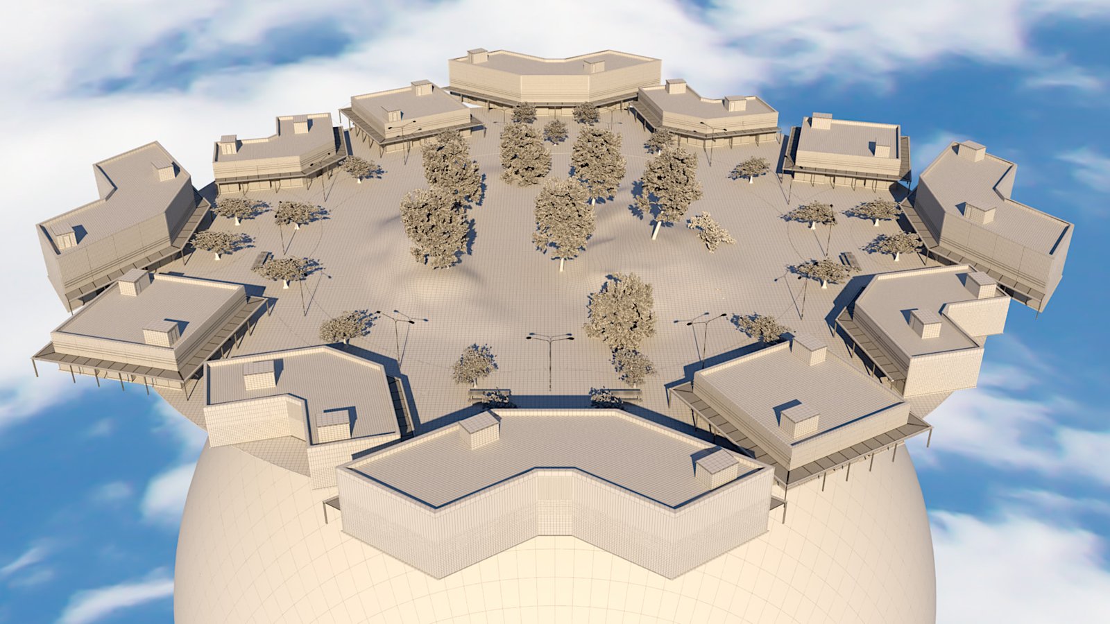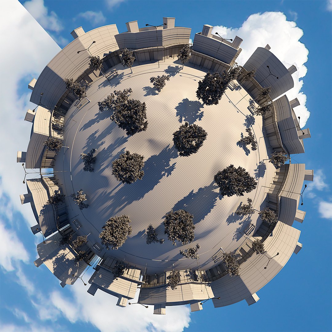 All I was given to work from was a bunch of photos they sent. Quite a challenge especially as the whole project needed to be done in a week and rendered out for poster size! I modelled the outer buildings flat then mapped the whole thing onto a sphere. A super fun project to work on. Unfortunately I don’t have the finished posters with the final designs.