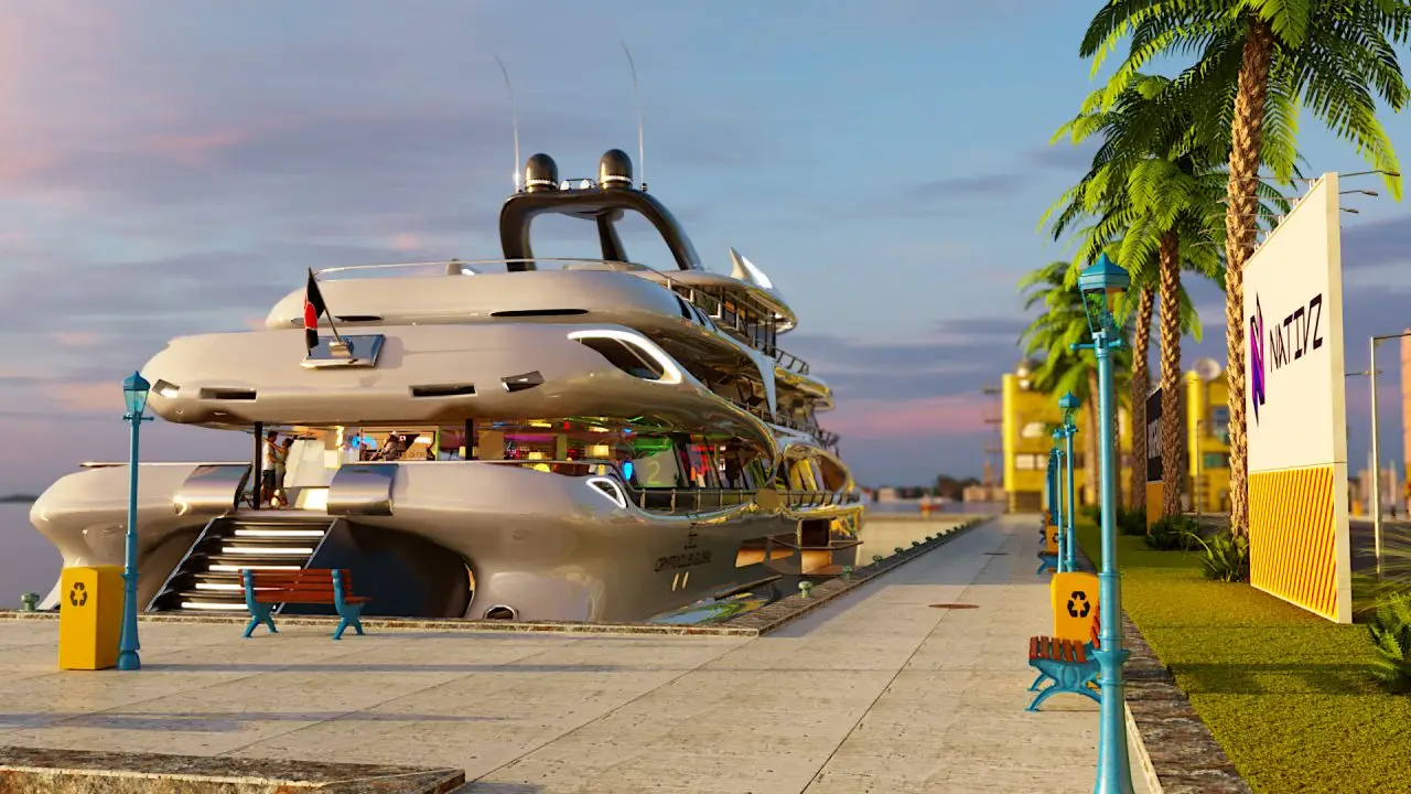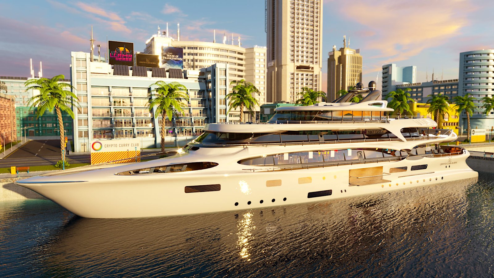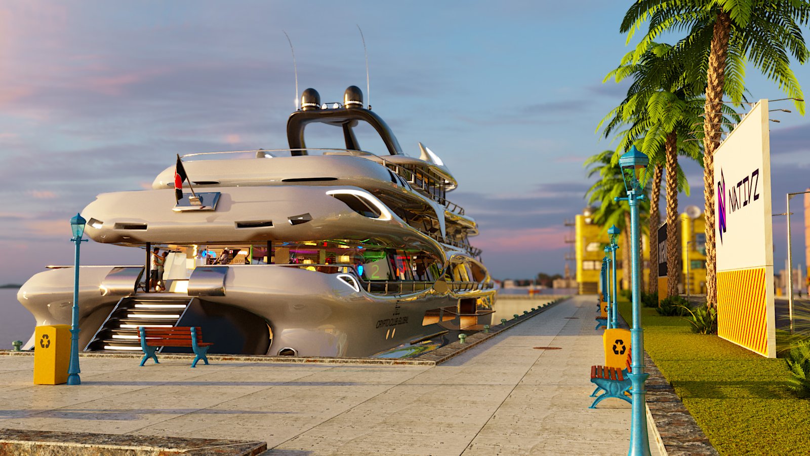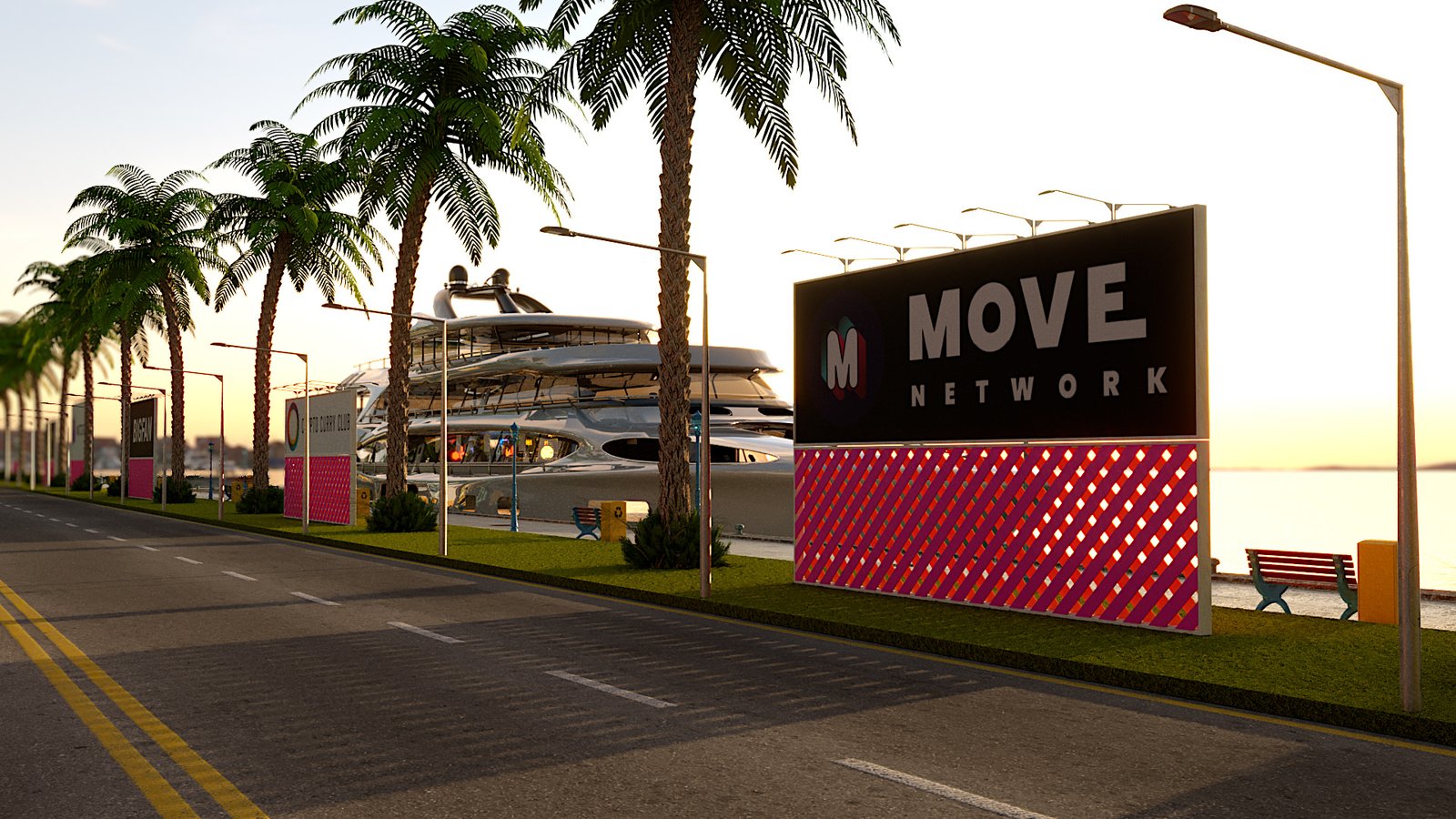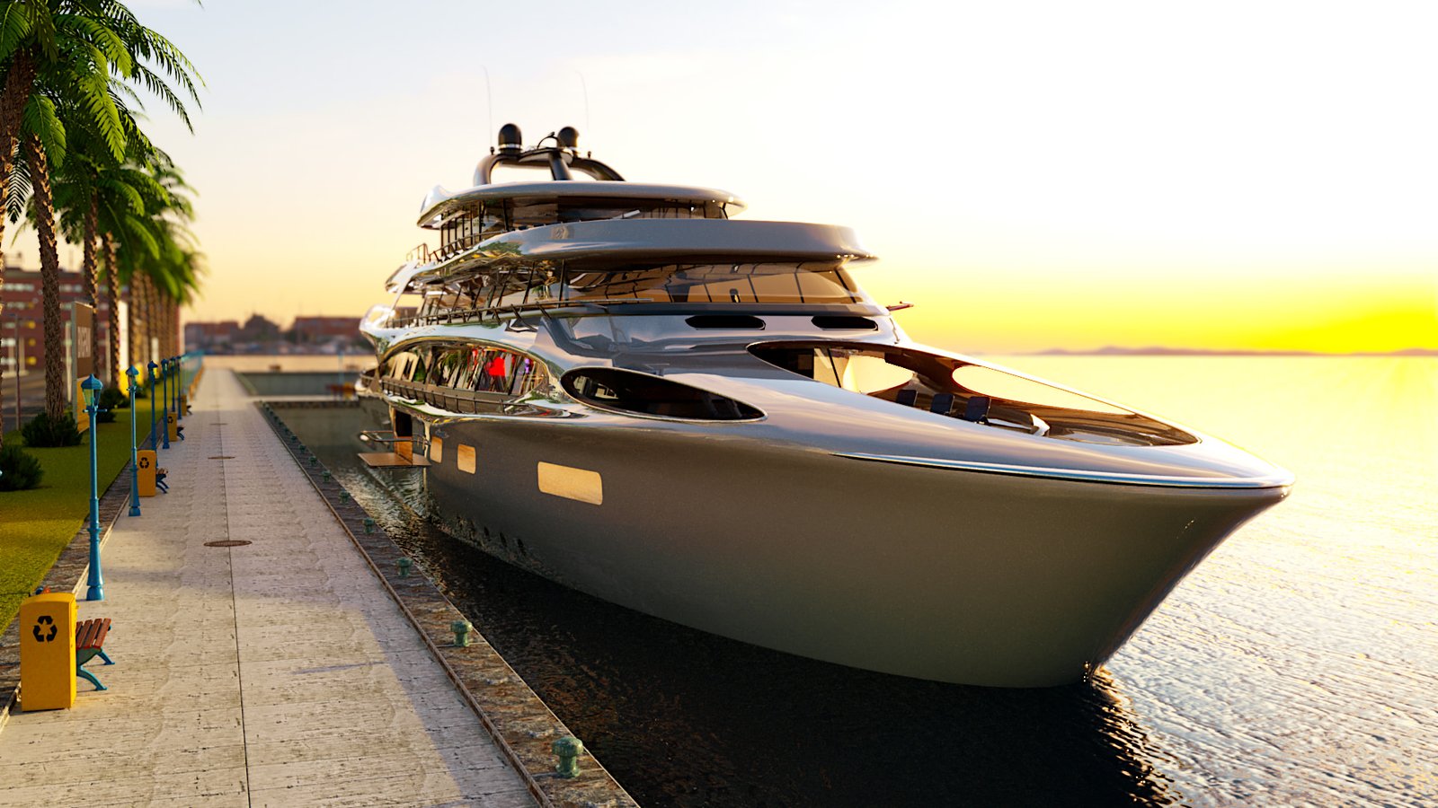 I only had 6 days to design the whole harbour area, yacht and all post-production work in After Effects & Premiere Pro. Even through most models are kit-bash I still had to texture them manually for Corona Renderer. The yacht was bought on Turbosquid but had no internals so the whole bar had to be modelled & fitted into the mesh. The final video is only 1280px x 720px mainly for phone or tablet viewing. Was a super fun project to work on with Jonathan Willis. Looking forward to the next one guys :-).