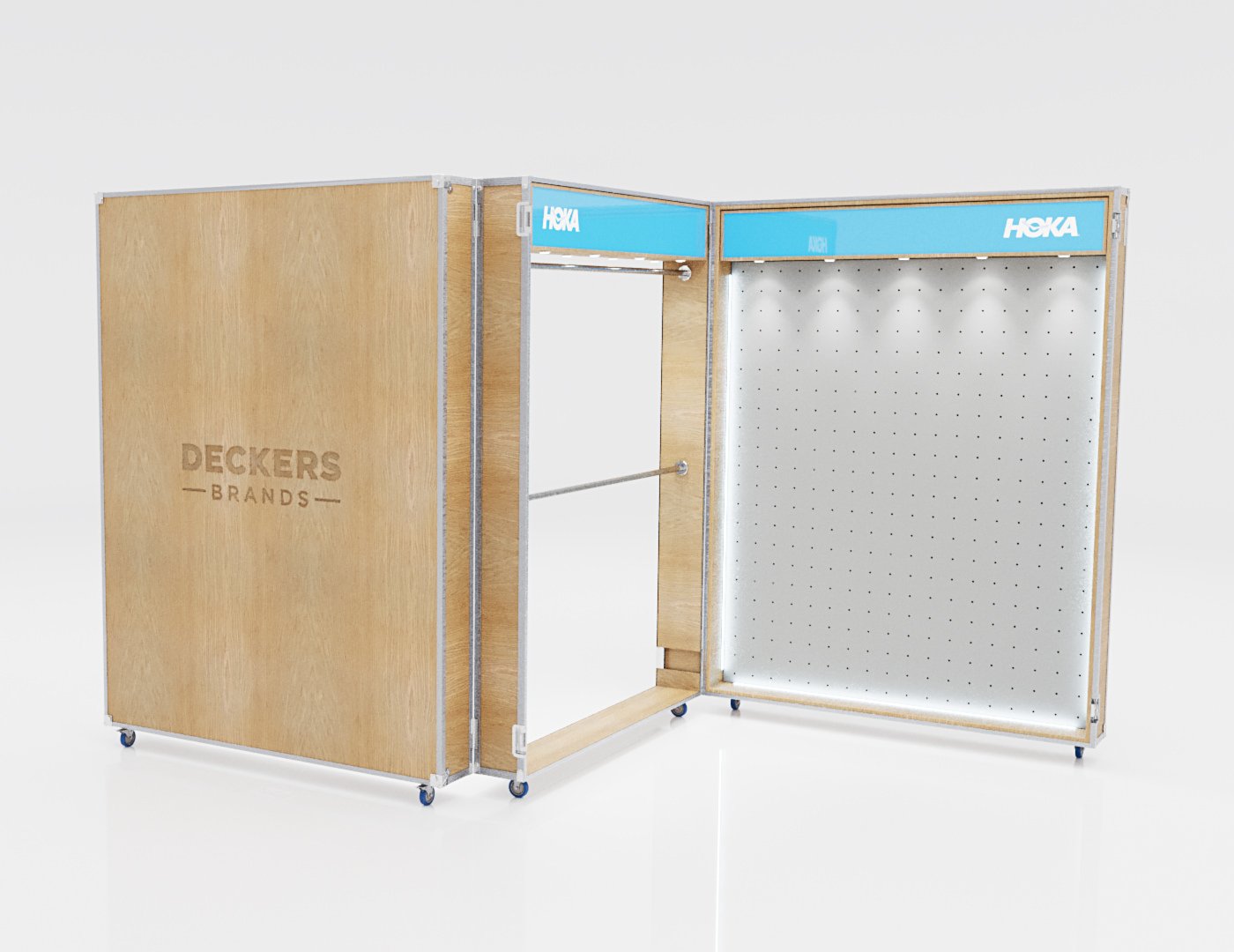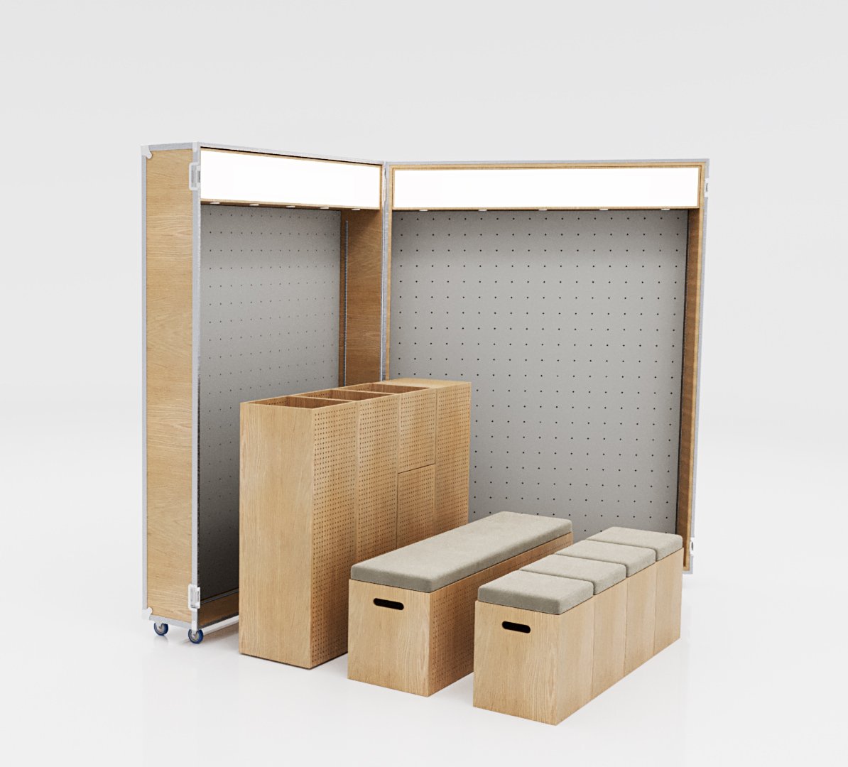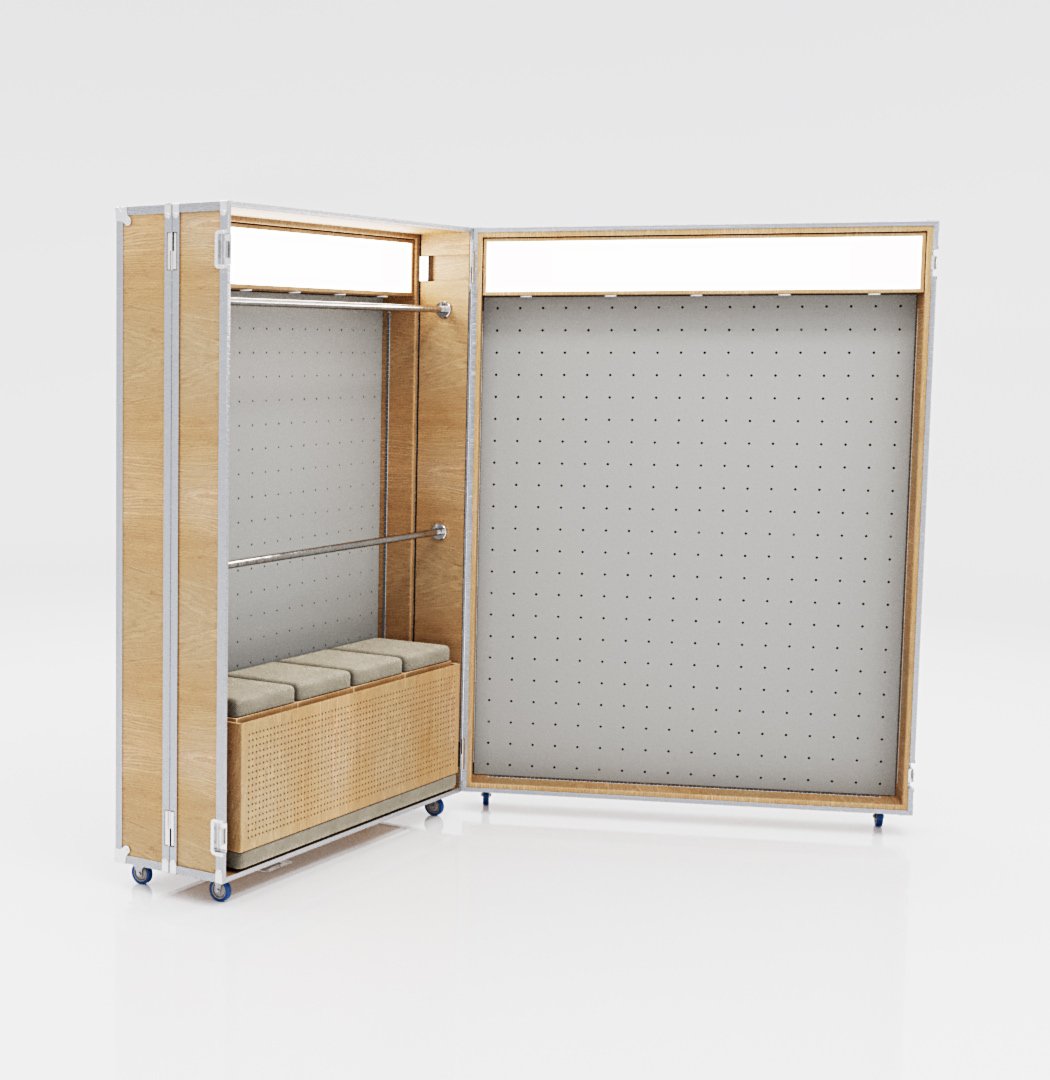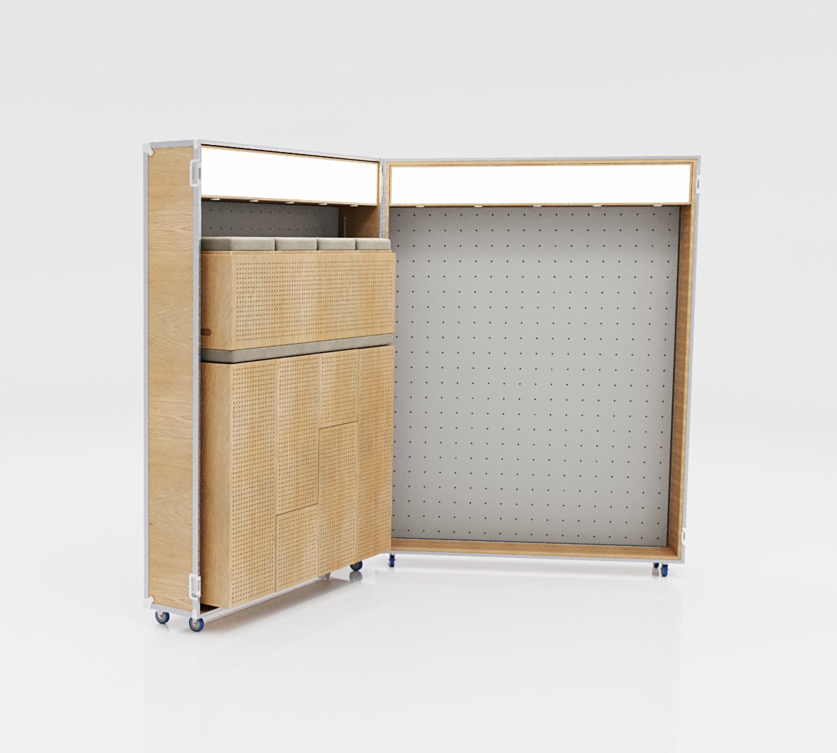 I was asked by Article Agency to come up with some innovative and compact mobile display units. The aim of these units is to travel to shows & events with a full display set up area including products, props & furniture. These can easily be rolled on and off lorries into events.