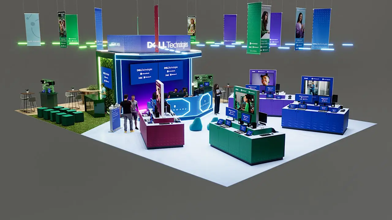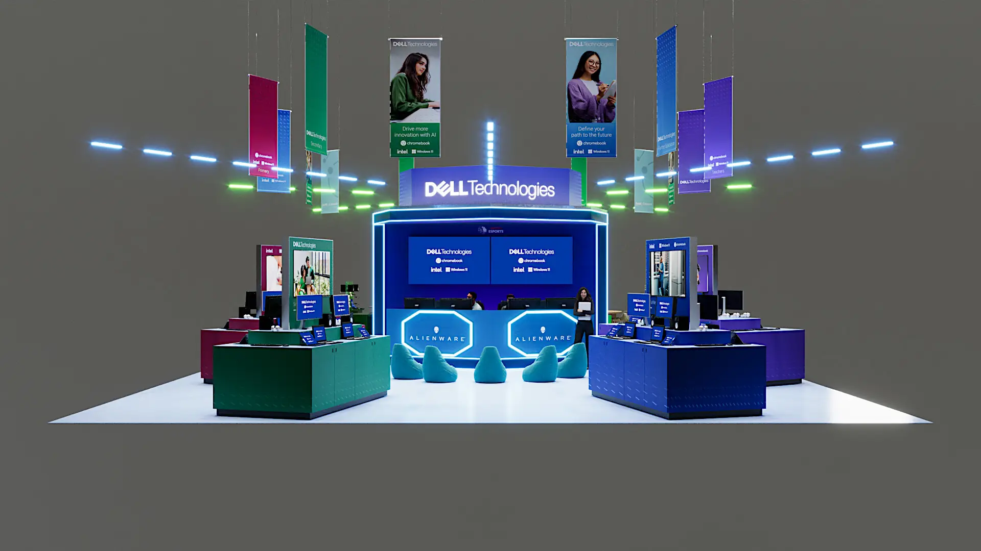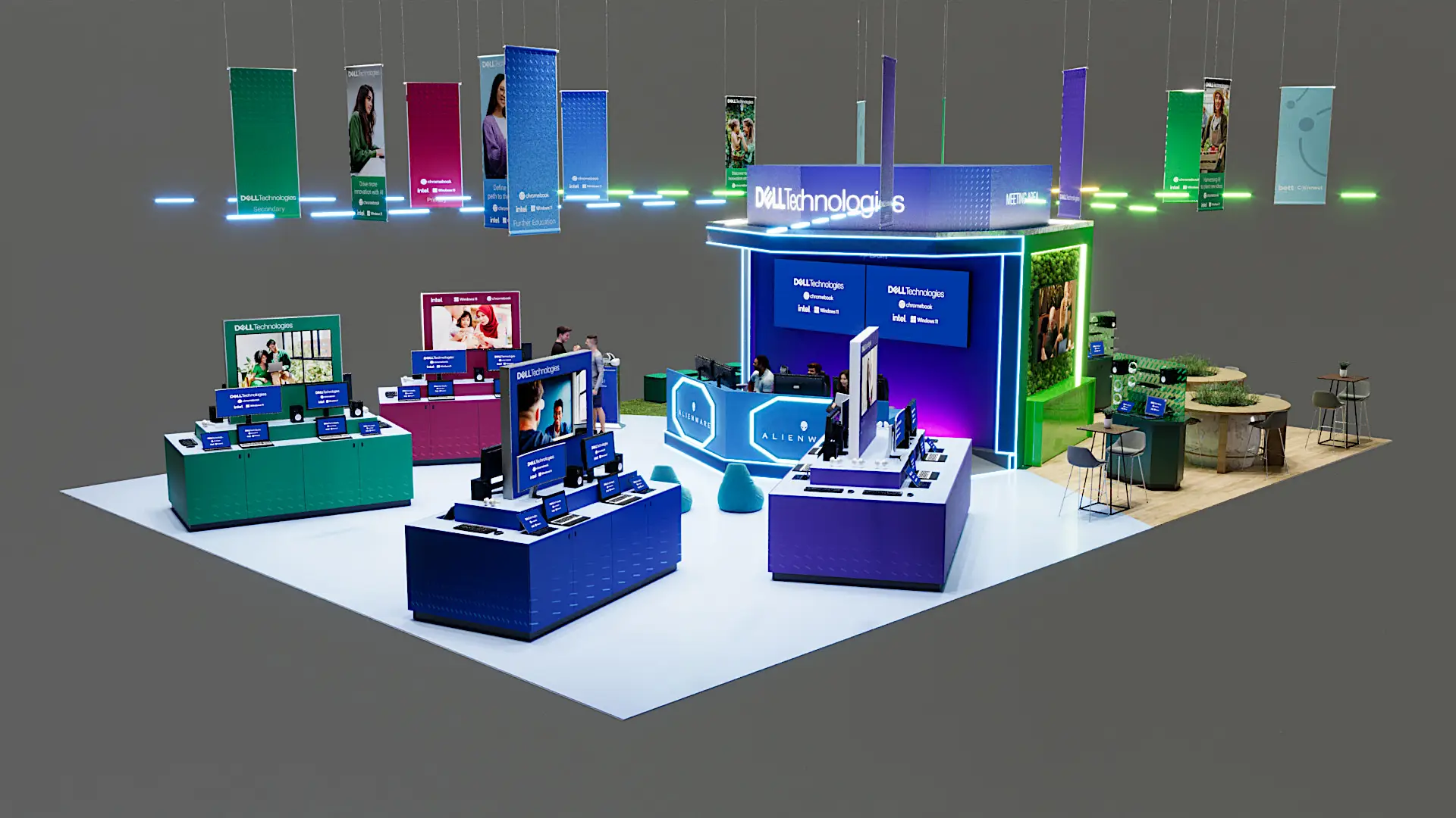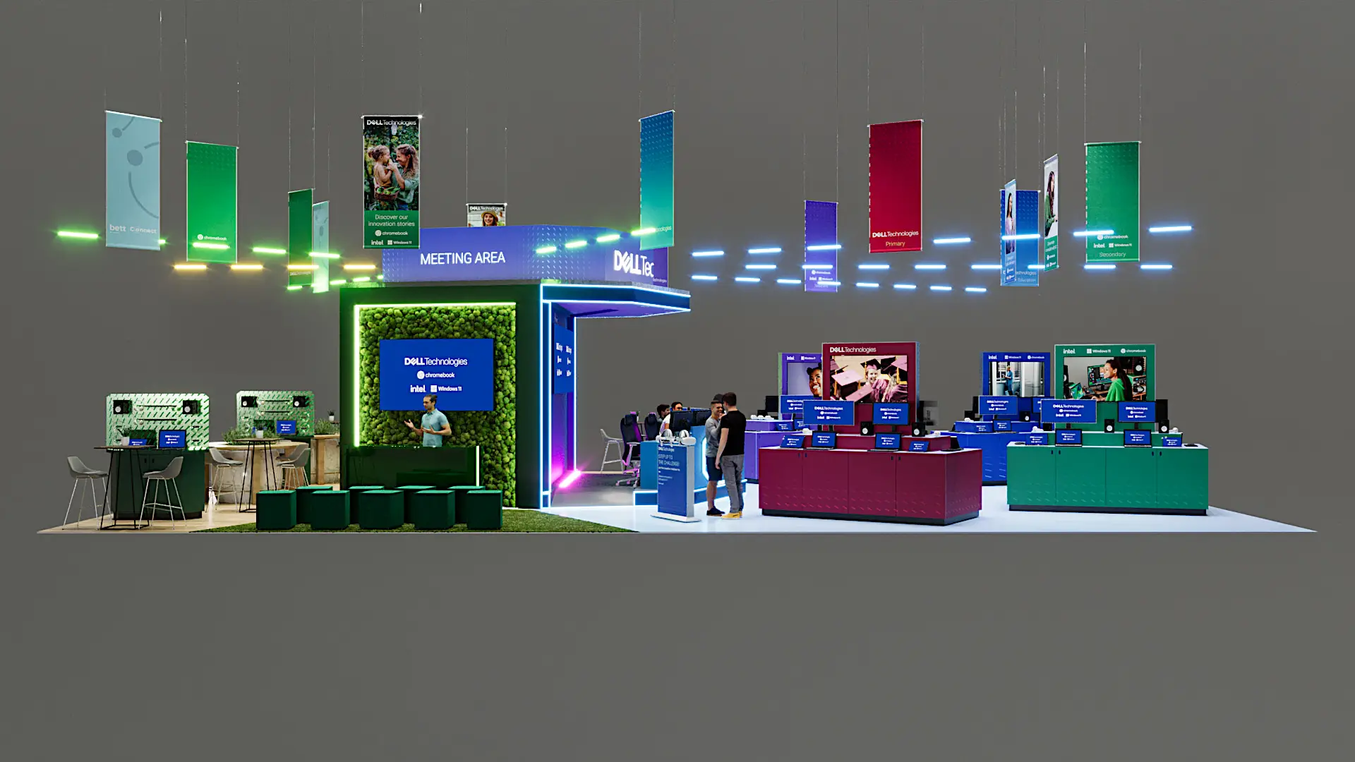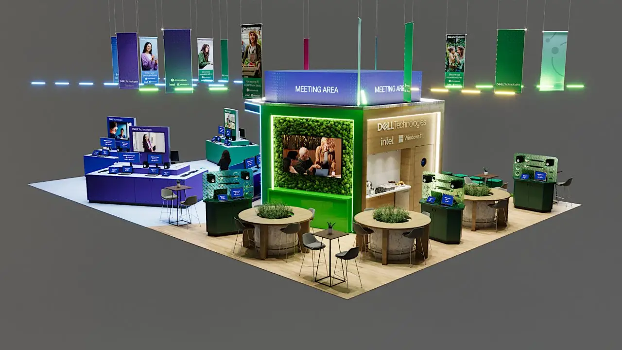 For the pitch we desided to create a 10m x 10m dining room with 3 close range projectors per wall with 4 tables with 8 diners. I used a pre built hall and made all interior walls and ceilings slightly off white (best for projections not blowing out). I decided to use a shiny black floor to create dramatic contrast and reflections wich will be visually ingageing with movement. Each table setup has a LED flooring that can project images and colours as well as controlled LED ceingling lights.