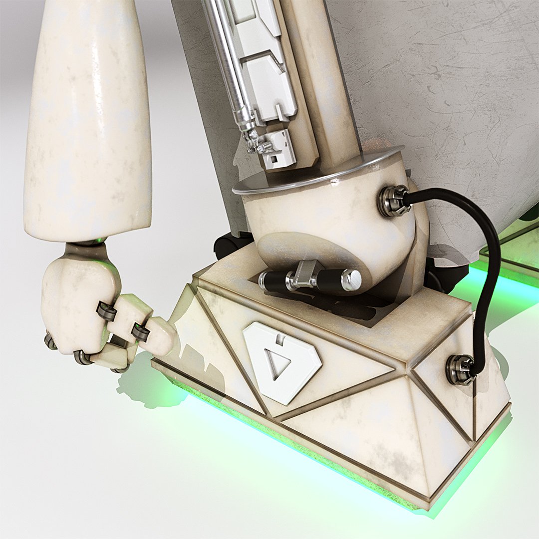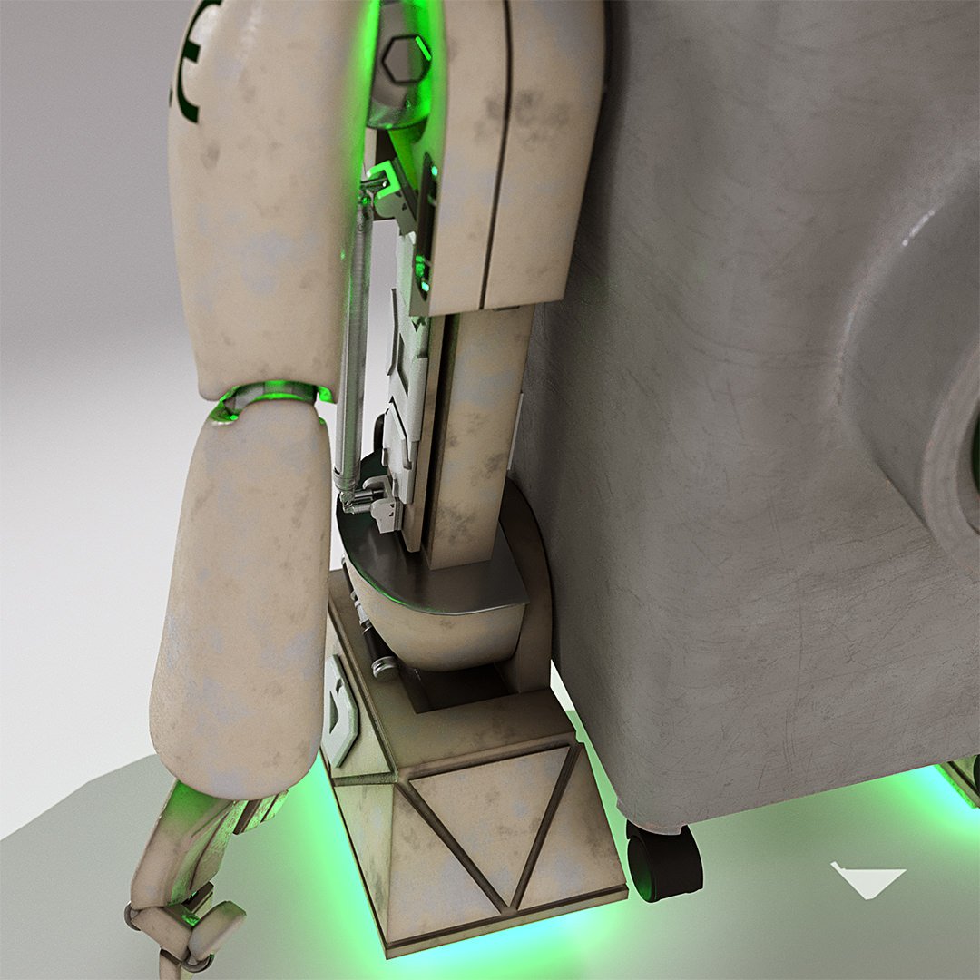 I wanted this character to have a different feel, more worn and grungy. To achieve this I used Corona Renderer’s ‘curvature shader’ which gives edges and corners a used look. I did not want it to be too in your face but subtle. I layered various displacement maps to get the scratches. I also had to build and organise the character with pivot point for animation later down the line. All done in 4 days and John Couchi was super happy with the end renders.