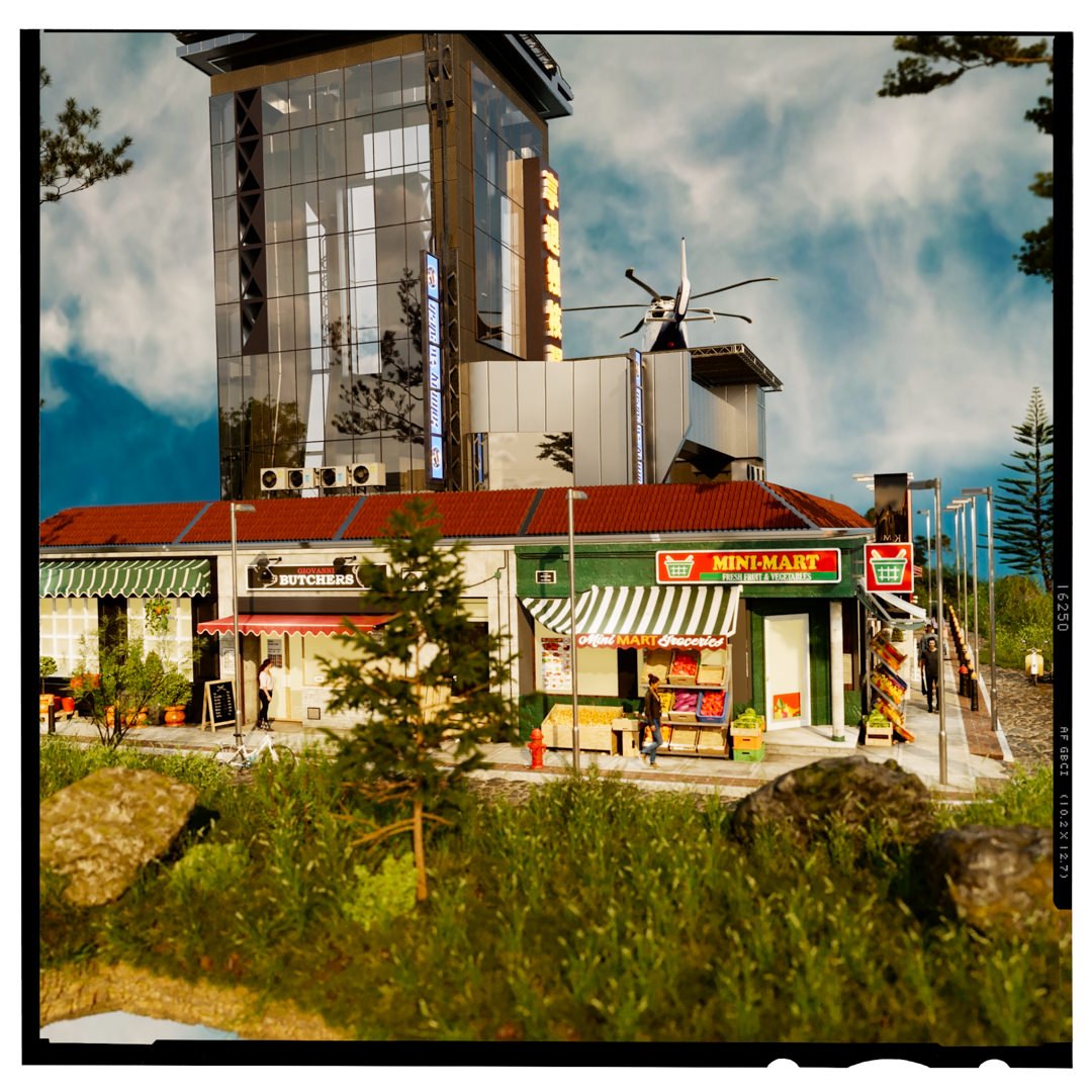 I had a day down time so decided to create a little 3d mini world using some of my kitbash bits. Did not want to spend more than a day and see what I could produce in this time frame. A bit of personal fun 🙂