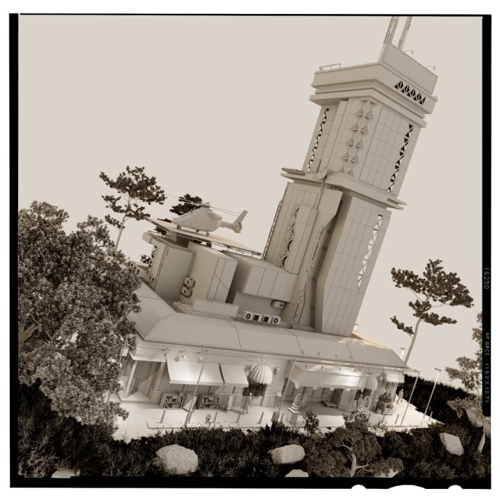 I only modelled the actual base island myself using Cinema 4D’s sculpting tools to clay model the surface quickly.