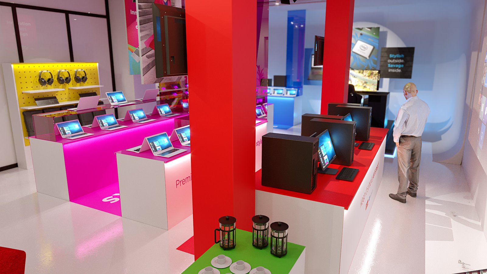 The first stage was to model up the gallery from floor plans and photos supplied. Then I worked with one of their Senior Designers and the Senior Account Manager to design the shop layout. All the renders were done using Corona Renderer.