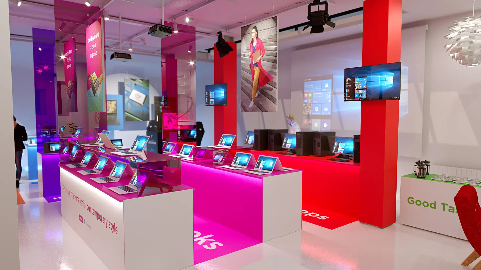 The first stage was to model up the gallery from floor plans and photos supplied. Then I worked with one of their Senior Designers and the Senior Account Manager to design the shop layout. All the renders were done using Corona Renderer.